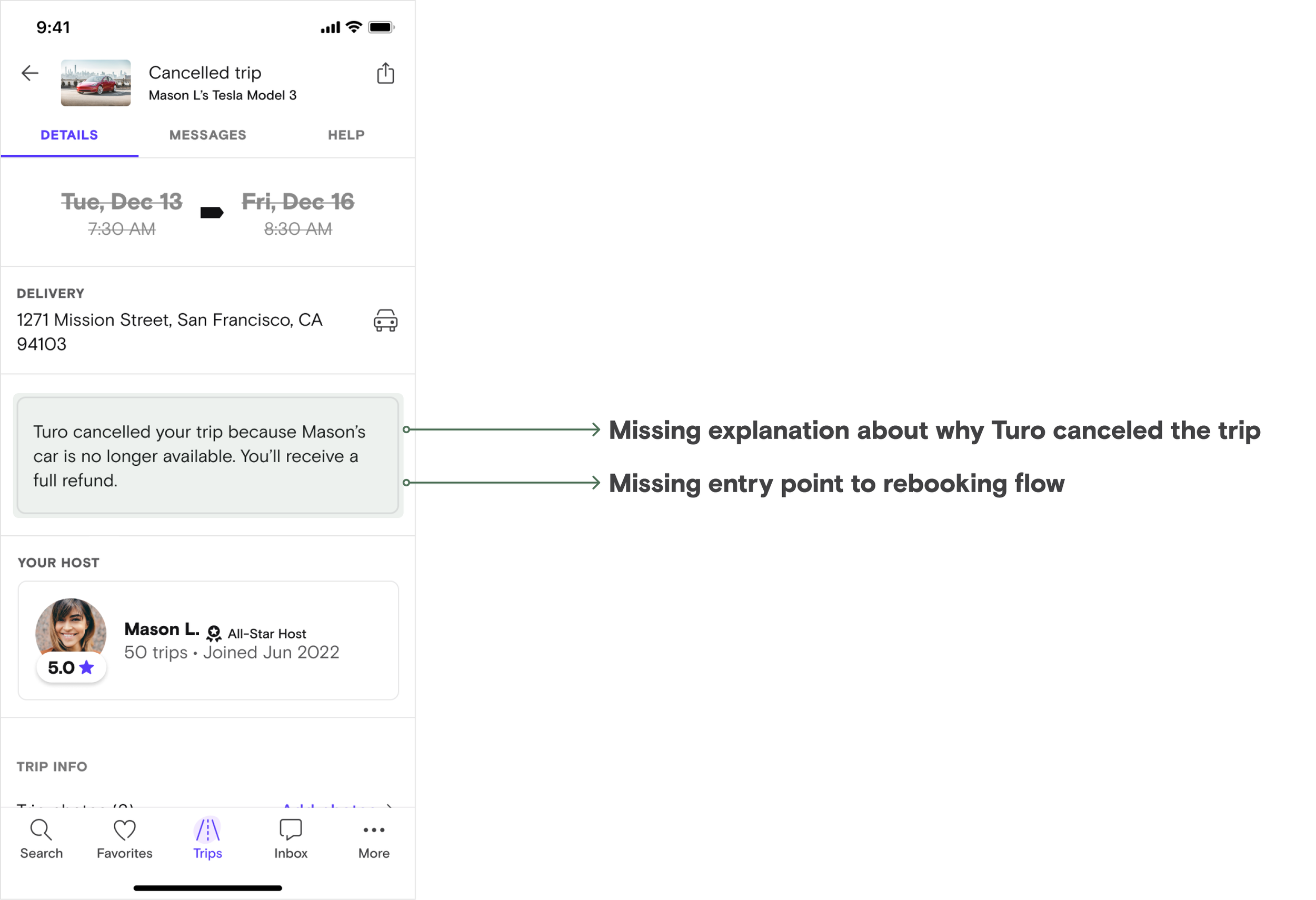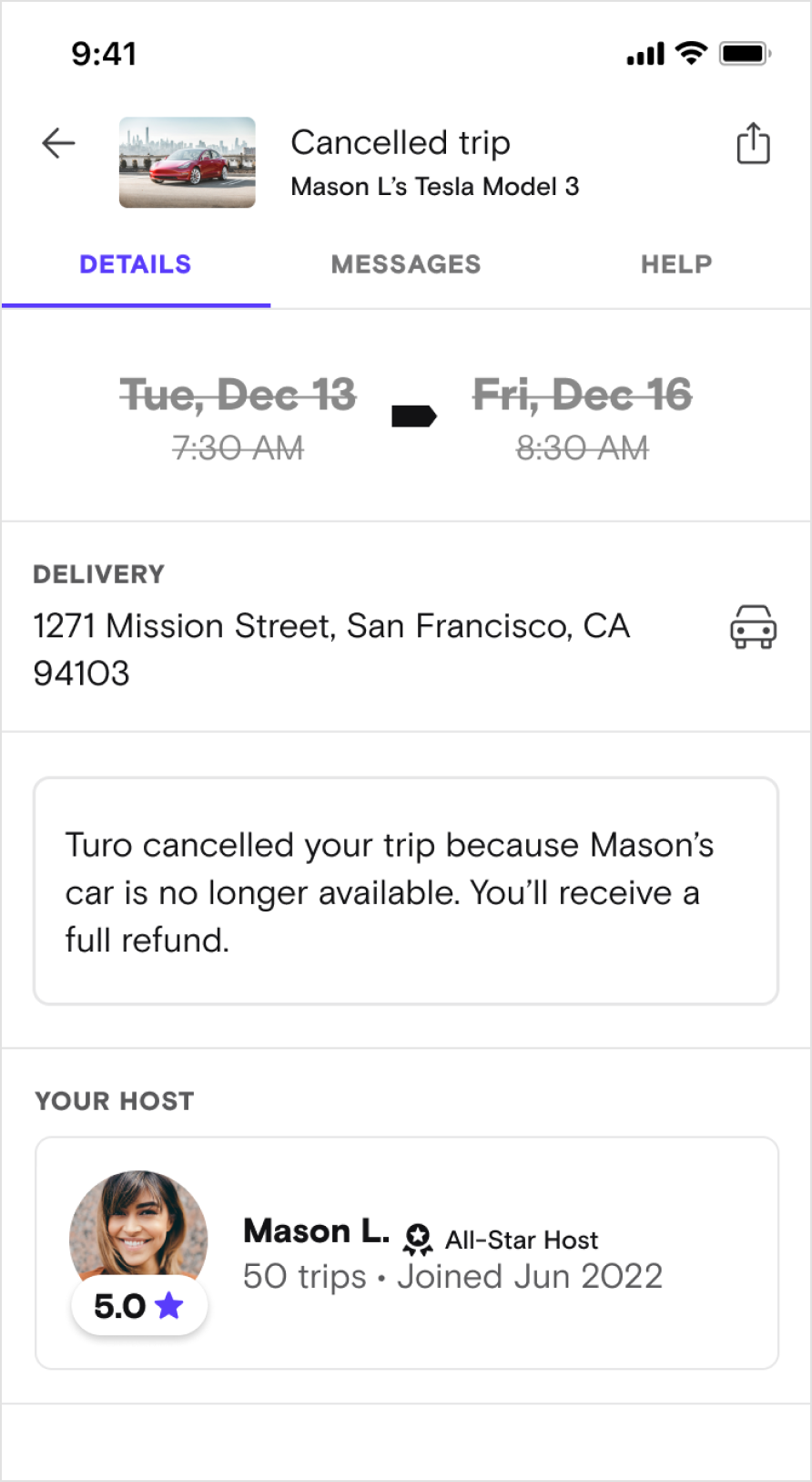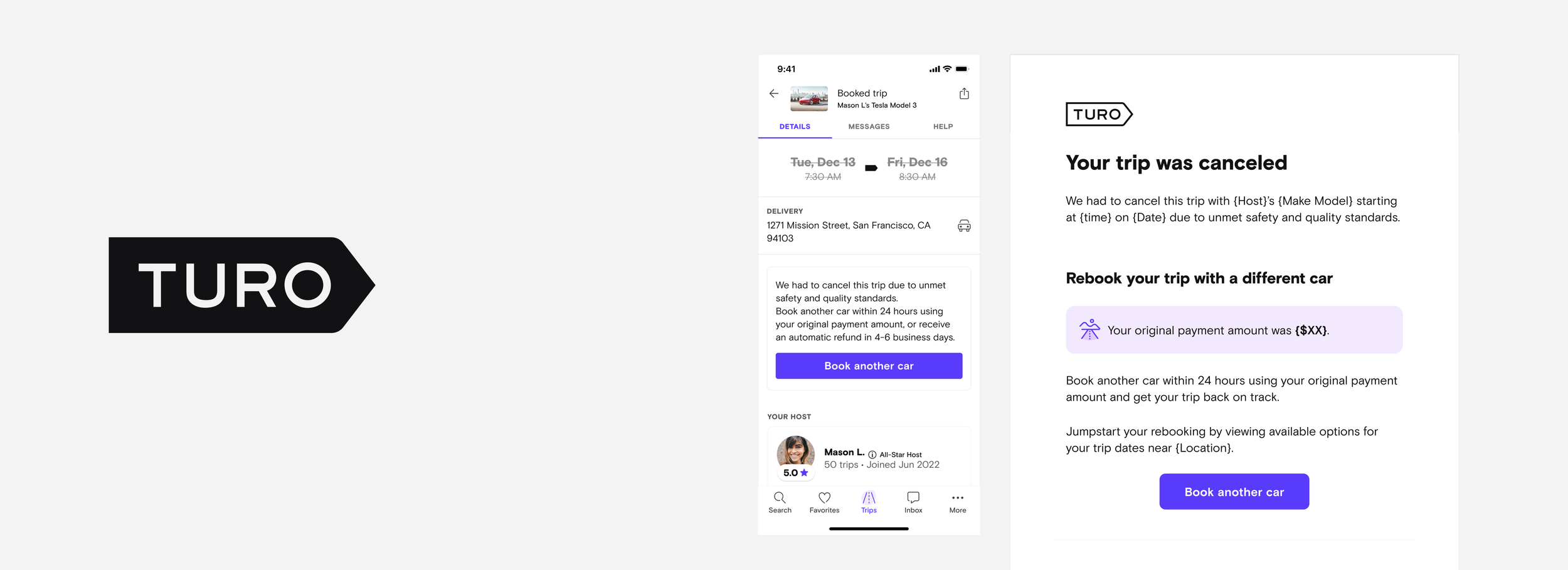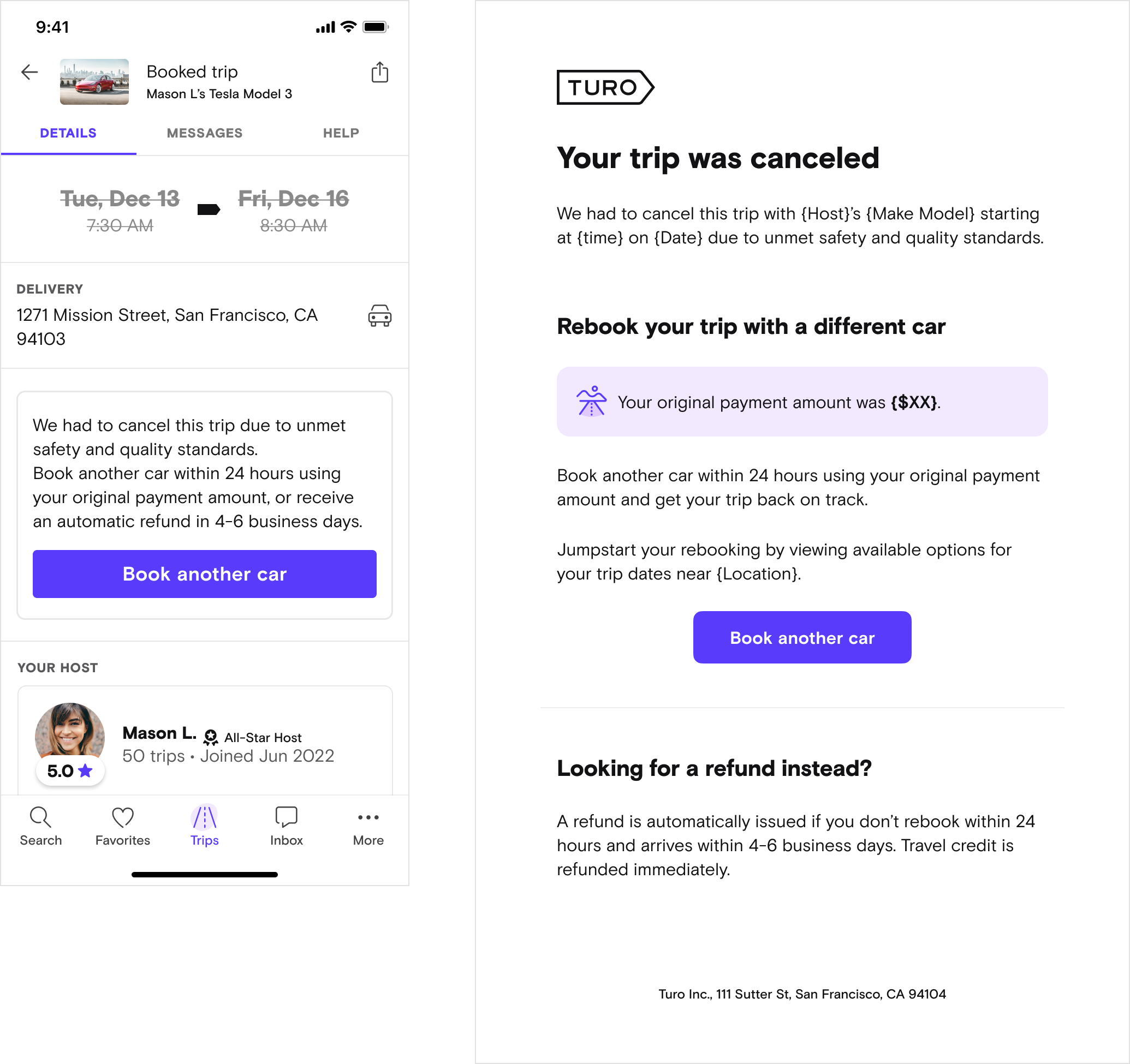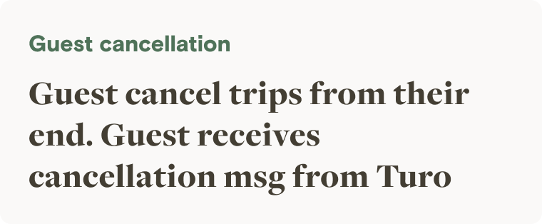 All guest receive Turo cancellation receive 50/50 split email notification and trip details message