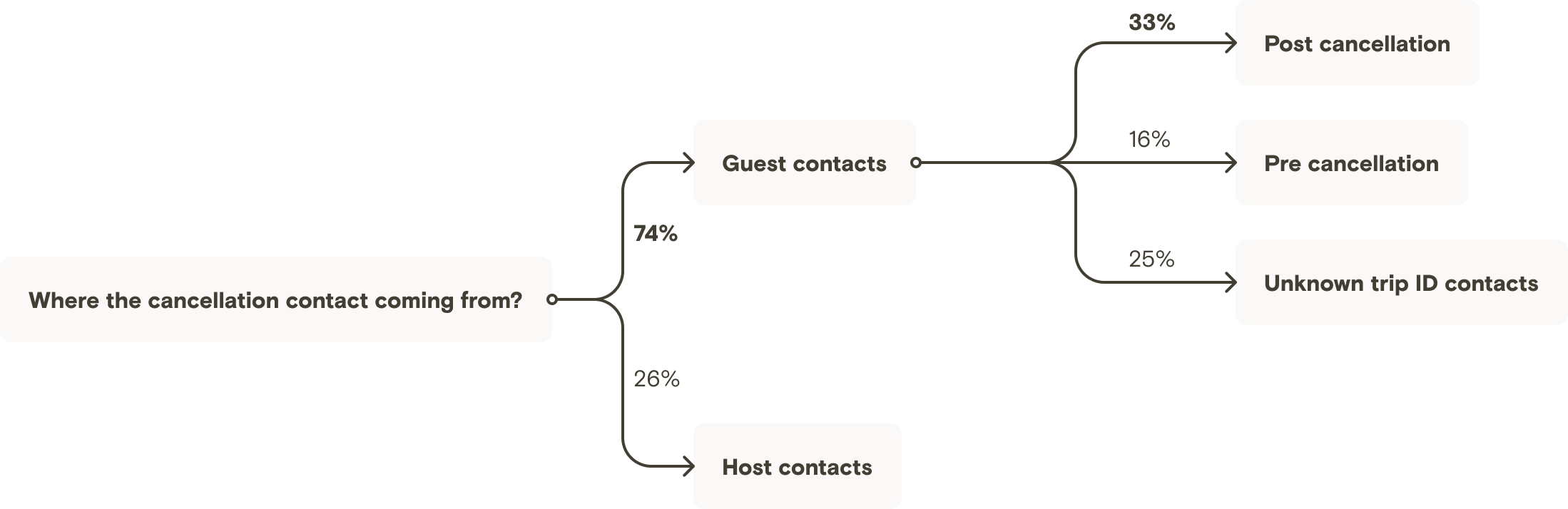1/3 of all cancellations come from guests and occur after the cancellation.