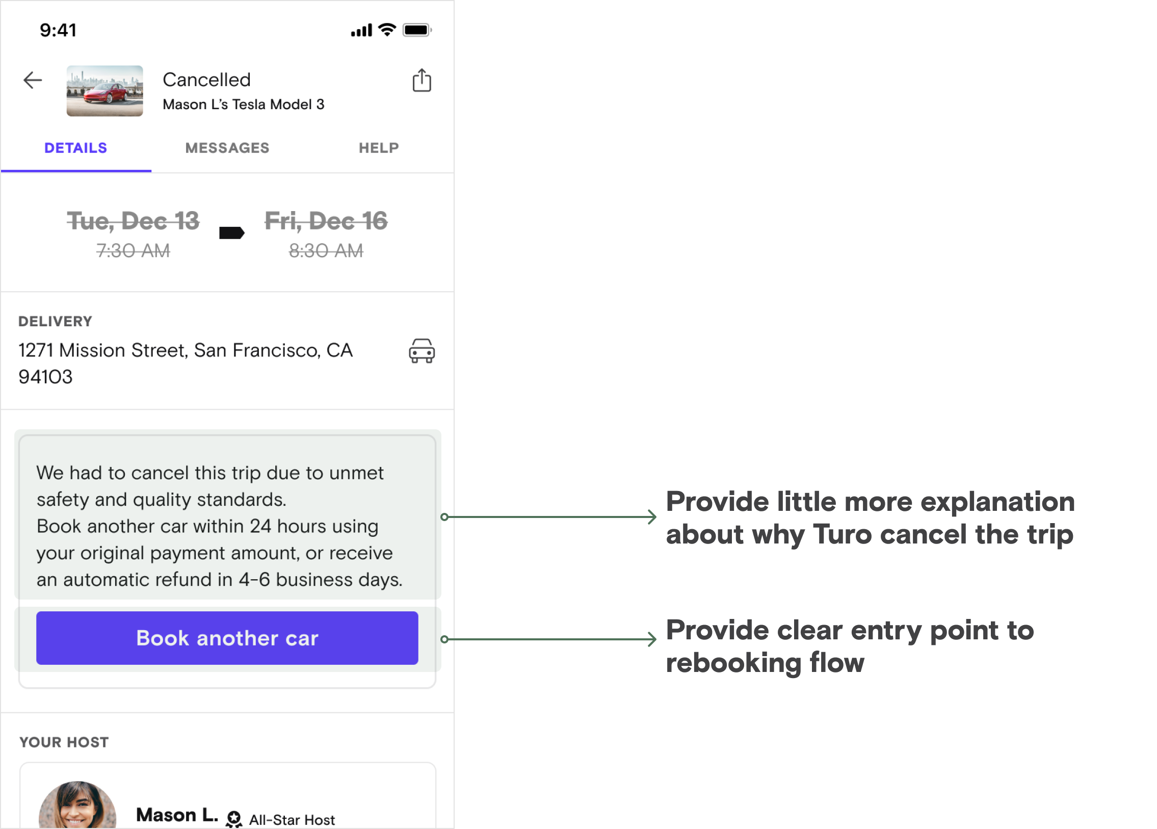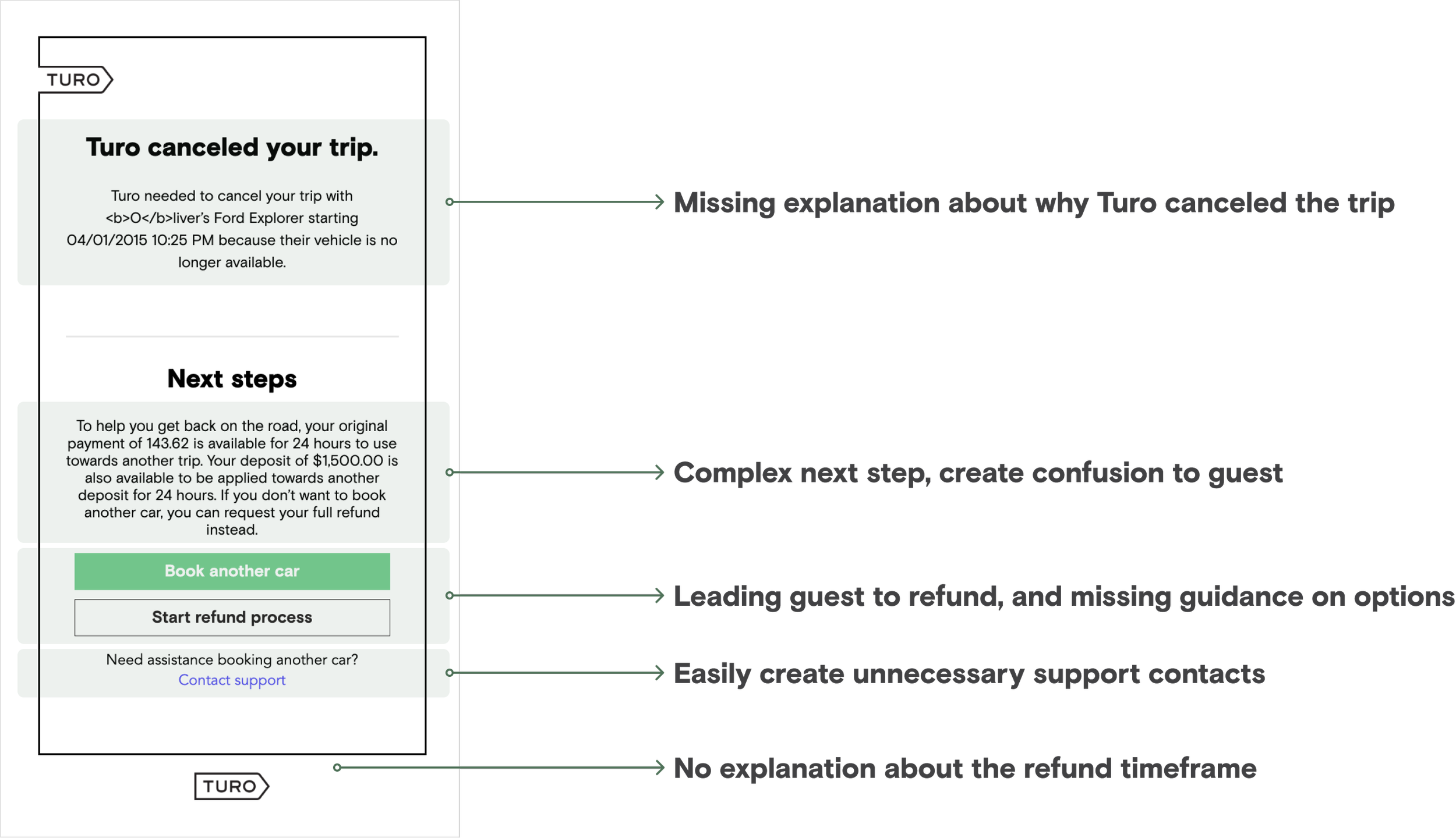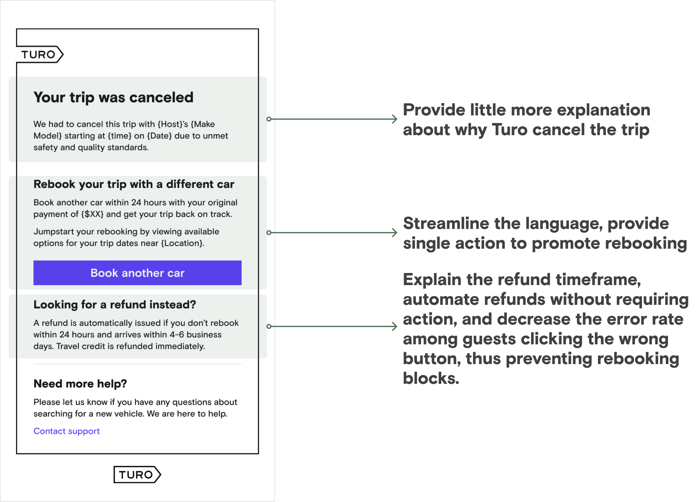 Reduce the # of contacts post-Turo cancellation and also promote self serve rebooking