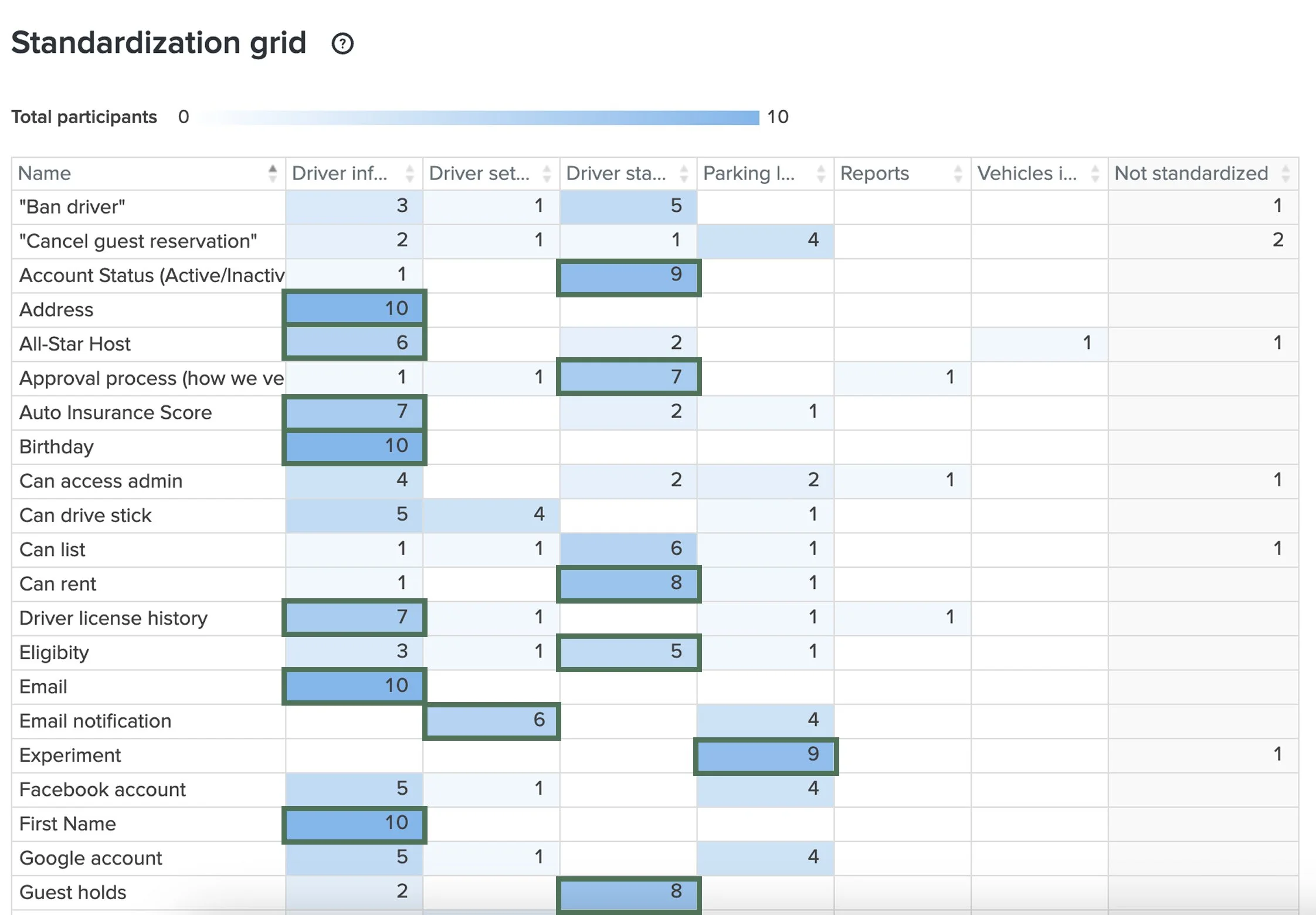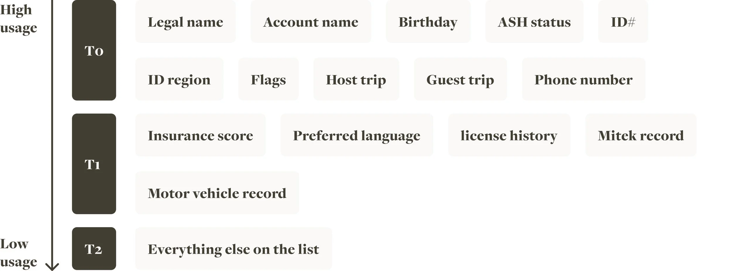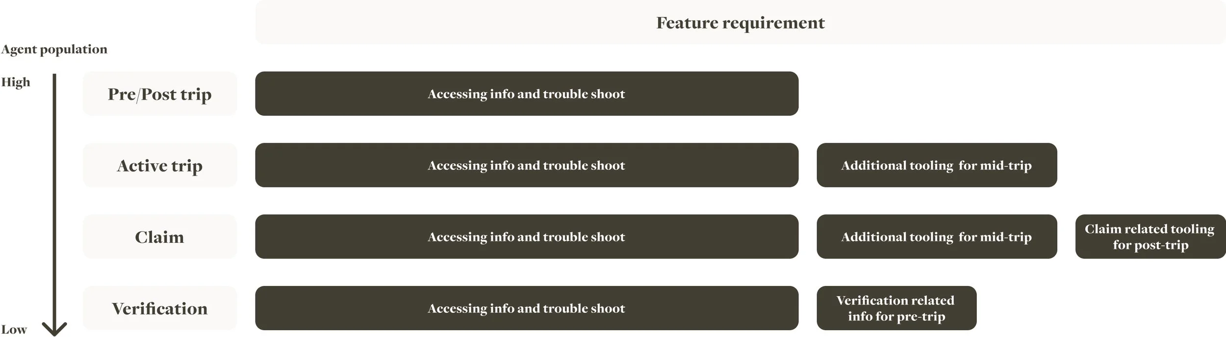 Moderate interview with agents from major lines of business to prioritize the information in each category (Information, status, reports, status, vehicle)