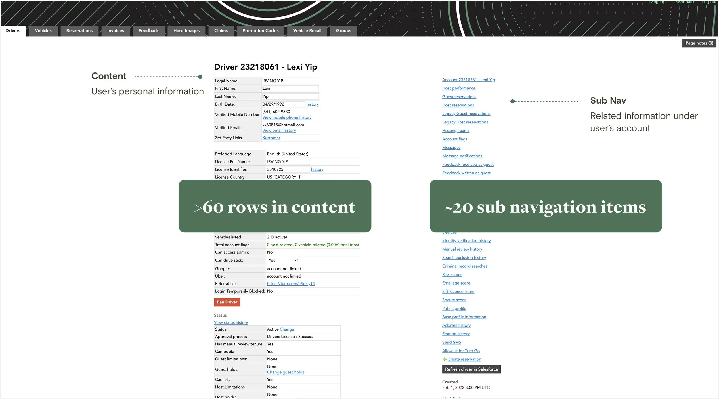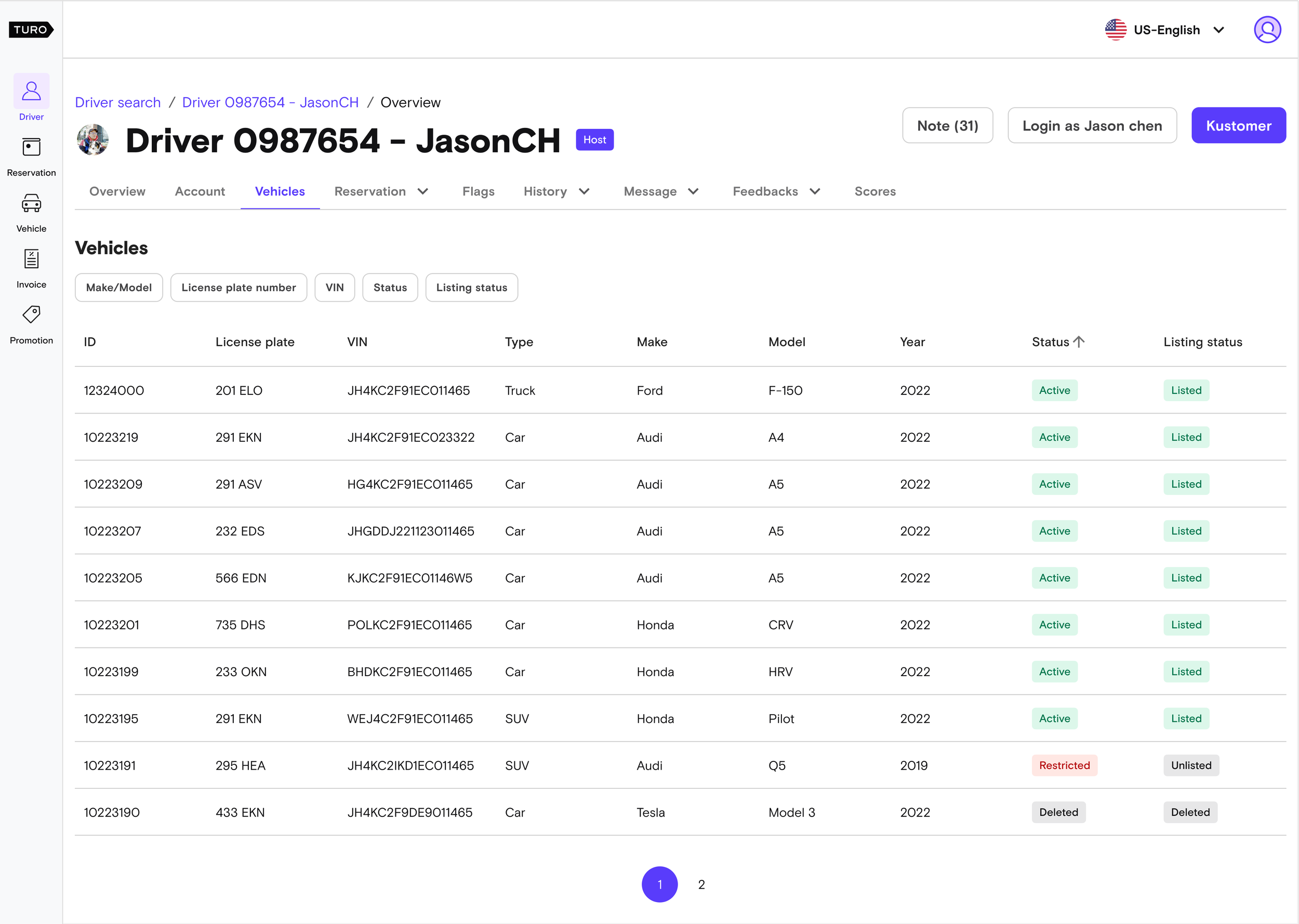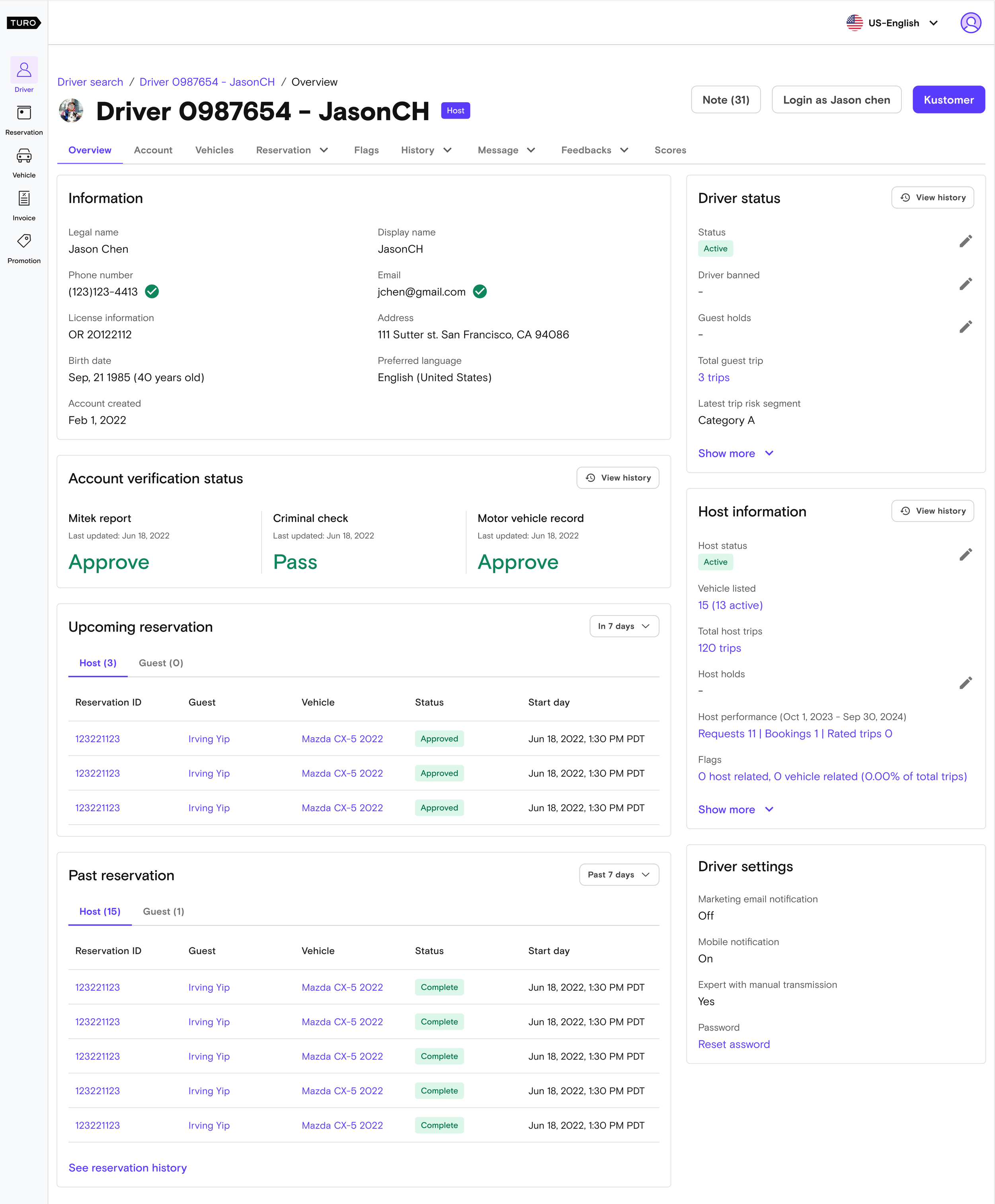 Turo’s Customer Platform is an internal tool widely used across the company by teams such as Engineering, Operations, Product, and Design. It serves as a central hub for accessing and managing customer-related data, including customer profiles, vehicle details, claims, and promo code usage. The platform also supports engineering needs like troubleshooting, testing, and QA.