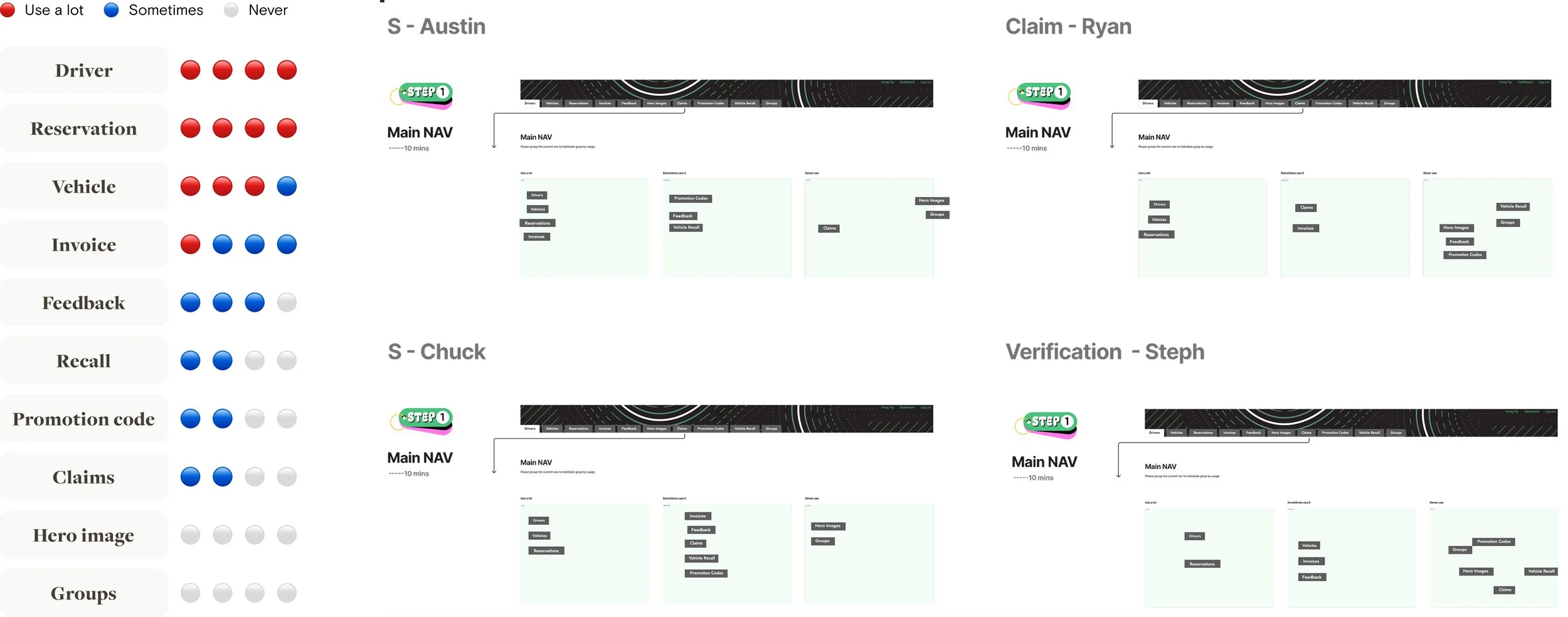 We started with a moderated card sort to help narrow down key information and better understand how each navigation item is used.