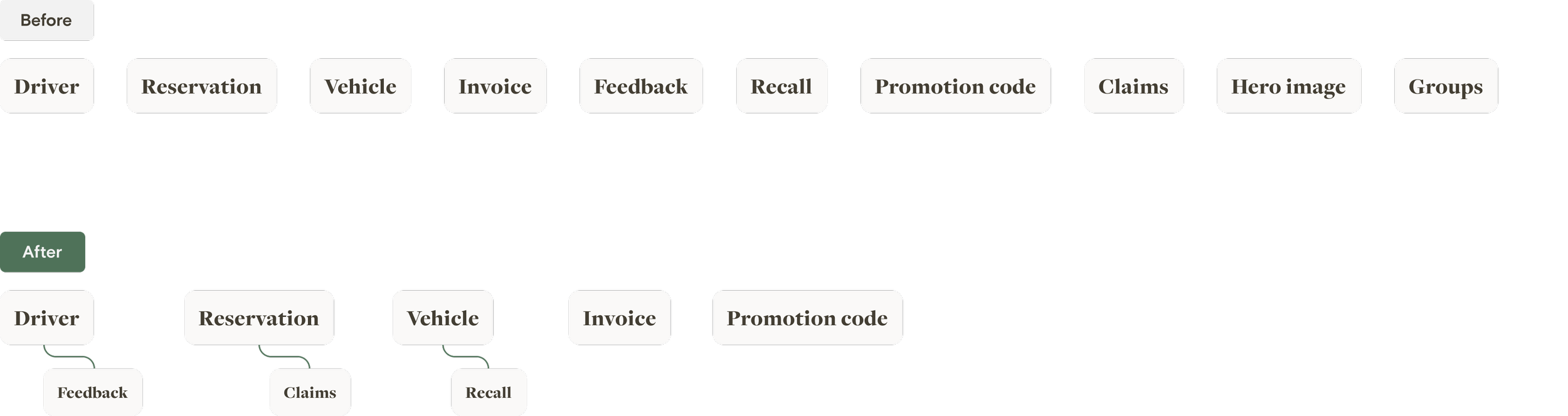We currently list many similar nav items individually. There’s an opportunity to pre-group them, making it easier and faster for agents to access relevant information